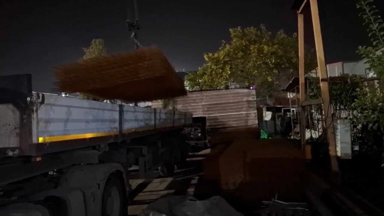Osmaniye’de Organize Sanayi Bölgesi’nden vinç ve tırla 18 ton hasır çeliği çalan 2 kişi tutuklandı. Hırsızlık anı güvenlik kamerasına yansıdı.