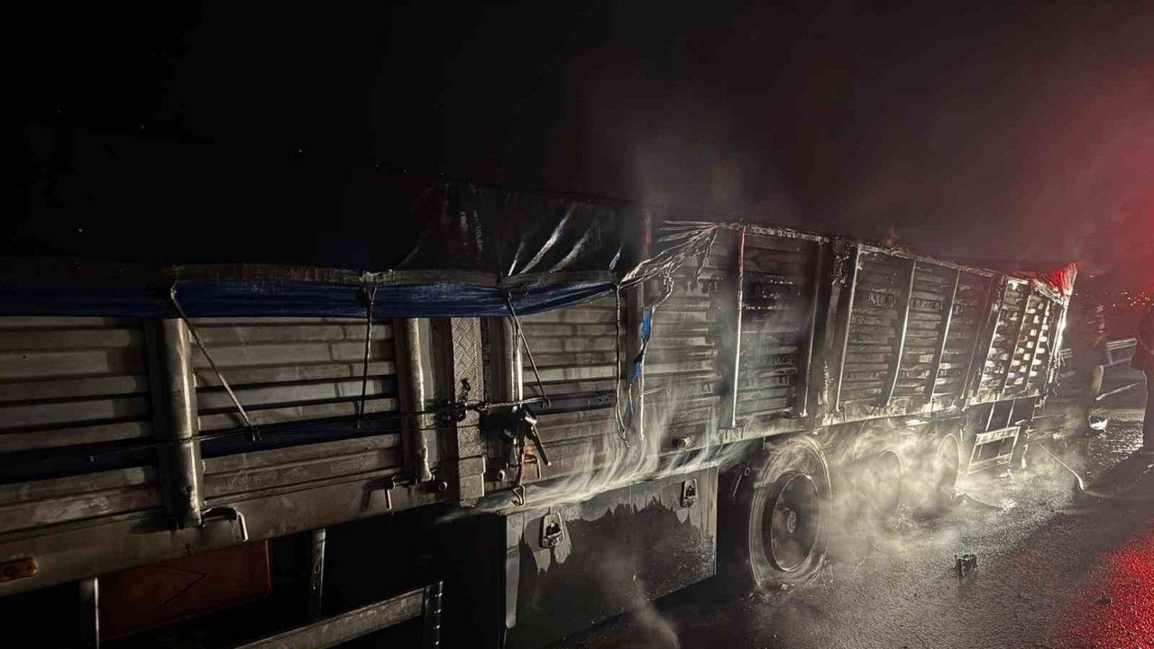 Yangın, akşam saatlerinde Tarsus-Adana-Gaziantep (TAG) Otoyolu Düziçi-Osmaniye arasındaki Şekerdere mevkiinde meydana geldi. Edinilen bilgilere göre, Adana istikametine doğru ilerleyen tırın dorsesindeki tekerler aniden alev aldı. Alevlerin kısa sürede tüm tırı sarması üzerine durumu fark eden tır sürücüsü, aracı hızla emniyet şeridine çekerek, büyük bir faciayı önledi. Sürücünün 112 Çağrı Merkezi’ne haber vermesi üzerine olay yerine sevk edilen Düziçi Belediyesi İtfaiye Müdürlüğü ekipleri, yangına kısa sürede müdahale etti. Söndürülen yangının çıkış nedeninin belirlenmesi için inceleme başlatıldı.