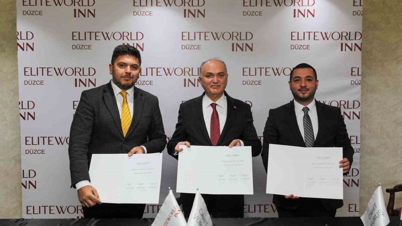 Düzceli iş insanı Cahit Vuruş tarafından hayata geçirilecek 'Elite World lnn Düzce Otel'in sözleşmesi, Düzce Belediye Başkanı Dr. Faruk Özlü'nün de katıldığı tören ile imzalandı. Yatırımdan duyduğu memnuniyeti dile getiren Başkan Özlü, 'Dünyada marka olmuş, zincir olmuş otellerden