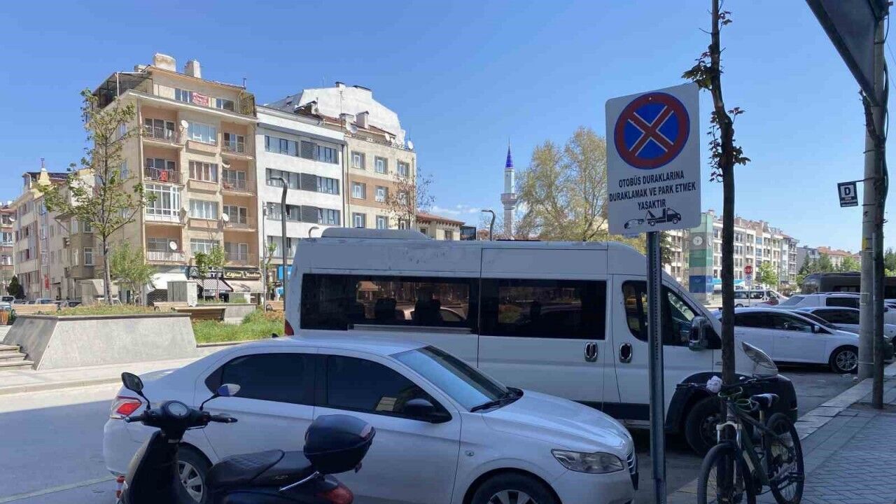 Eskişehir’de otobüs duraklarını otopark gibi kullanan duyarsız sürücüler tepkiye neden oluyor.