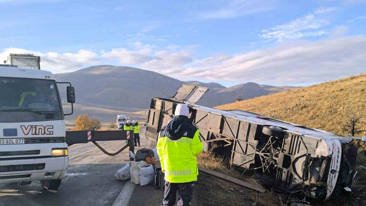 Kaza, Dinar ilçesine bağlı Tatarlı beldesi yakınlarında meydana geldi. Edinilen bilgilere göre, A.A. idaresindeki 23 AB 204 plakalı Murat Turizm’e ait yolcu otobüsü bilinmeyen bir nedenden ötürü kontrolden çıkarak şarampole devrildi. Kazada araçta bulunan 25 kişiden 2’si hayatını kaybederken, 21 kişi ise yaralandı. Kazanın ardından bölgeye çok sayıda jandarma, AFAD ve sağlık ekibi sevk edildi. Bölgeye gelen ekipler 2 kişinin hayatını kaybettiğini belirlerken yaralanan 21 kişiyi ambulanslarla bölgedeki hastanelere kaldırdı.