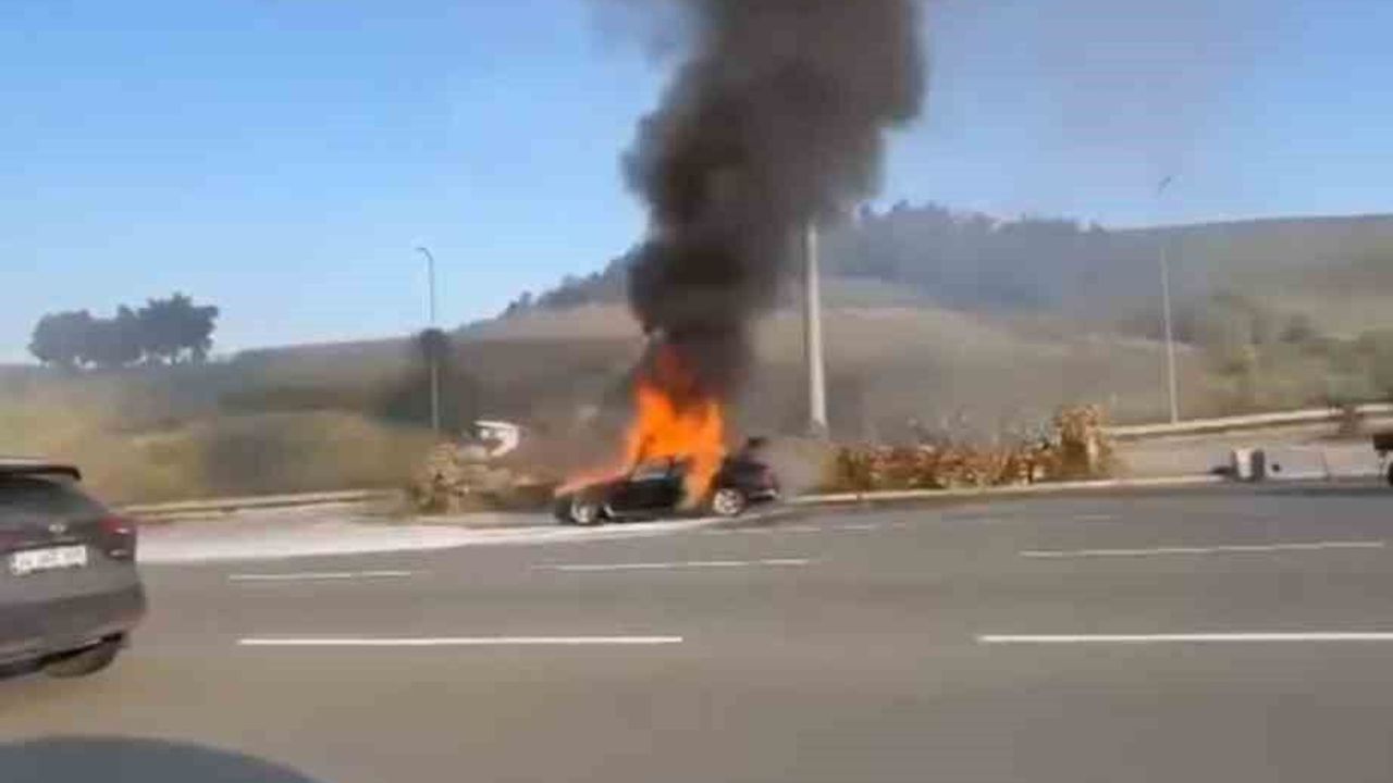 Bursa Otobanı kuzey gişelerinde bir otomobil alev alev yandı.