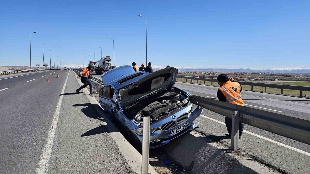 Edinilen bilgiye göre, Erkilet Kuzey Çevre Yolu'nda, A.Ö. yönetimindeki 52 ABD 345 plakalı otomobil, sürücüsünün direksiyon hakimiyetini kaybetmesi sonucu yoldan çıkarak refüje girdi. A.Ö. otomobilde sıkışırken, ihbar üzerine bölgeye polis, itfaiye ve sağlık ekipleri sevk edildi. Polis ekipleri yolda güvenlik önlemi alırken, itfaiye ekipleri de A.Ö.'yü otomobilden çıkararak, sağlık ekiplerine teslim etti. Sağlık ekipleri de yaptıkları ilk müdahalenin ardından A.Ö.'yü ambulansla hastaneye kaldırdı. Çalışmaların ardından otomobil çekiciyle kaldırıldı.