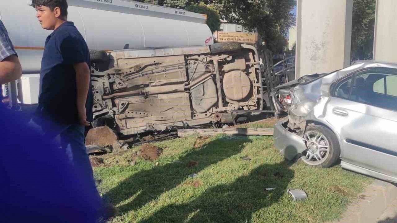 Edinilen bilgilere göre, Adıyaman merkez Atatürk Bulvarı Köy Hizmetleri Kavşağı yakınlarında iki otomobil çarpıştı. Çarpışmanın etkisiyle otomobillerden biri kontrollerden çıkarak refüjü aşıp karşı şeride geçerek takla attı. Meydana gelen kazara araçlarda bulunan 4 kişi hafif şekilde yaralandı. Yaralılara müdahale olay yerine gelen sağlık ekiplerince müdahale edildi. Sağlık durumları iti olan yaralılar hastaneye gitmeyi kabul etmedi. Kazaya karışan araçlar, yapılan incelemelerin ardından yoldan kaldırıldı.