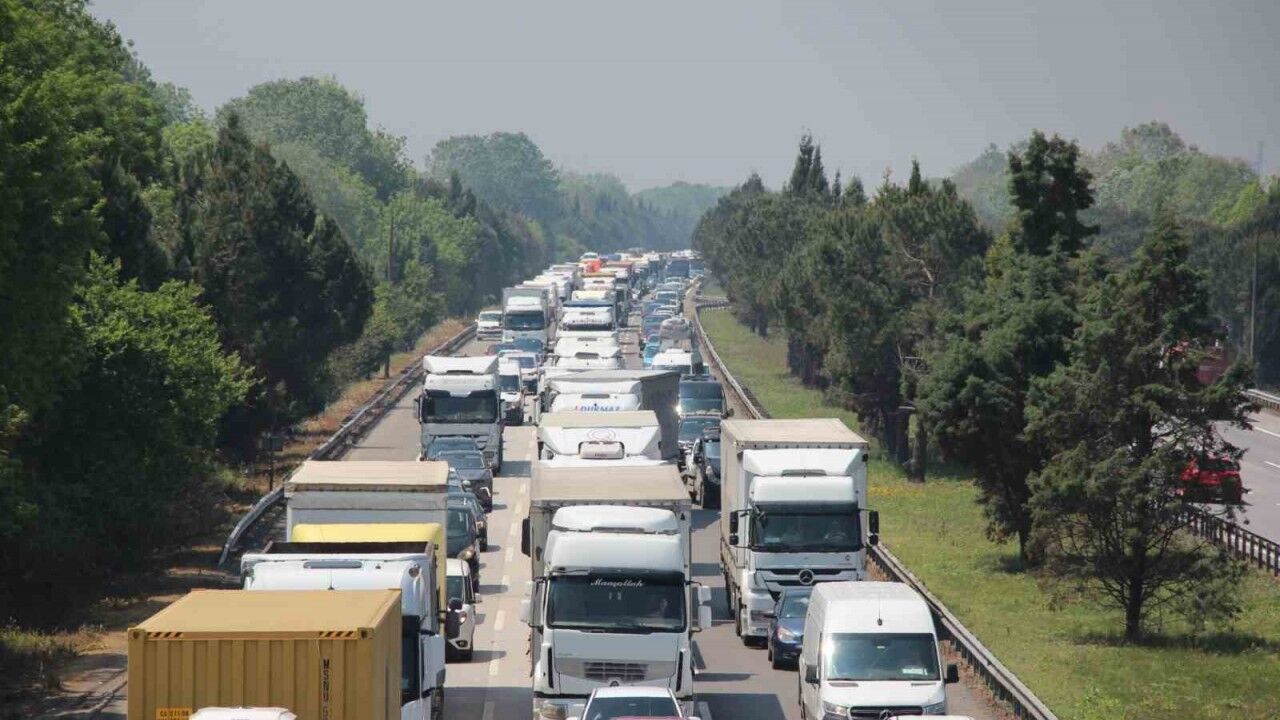 Anadolu Otoyolu Sakarya geçişinde lastiğinin patlaması neticesinde sürücüsünün kontrolünden çıkarak bariyerlere çarpan tır, makasladı. Kaza sebebi ile Ankara istikametinde uzun araç kuyrukları oluştu.