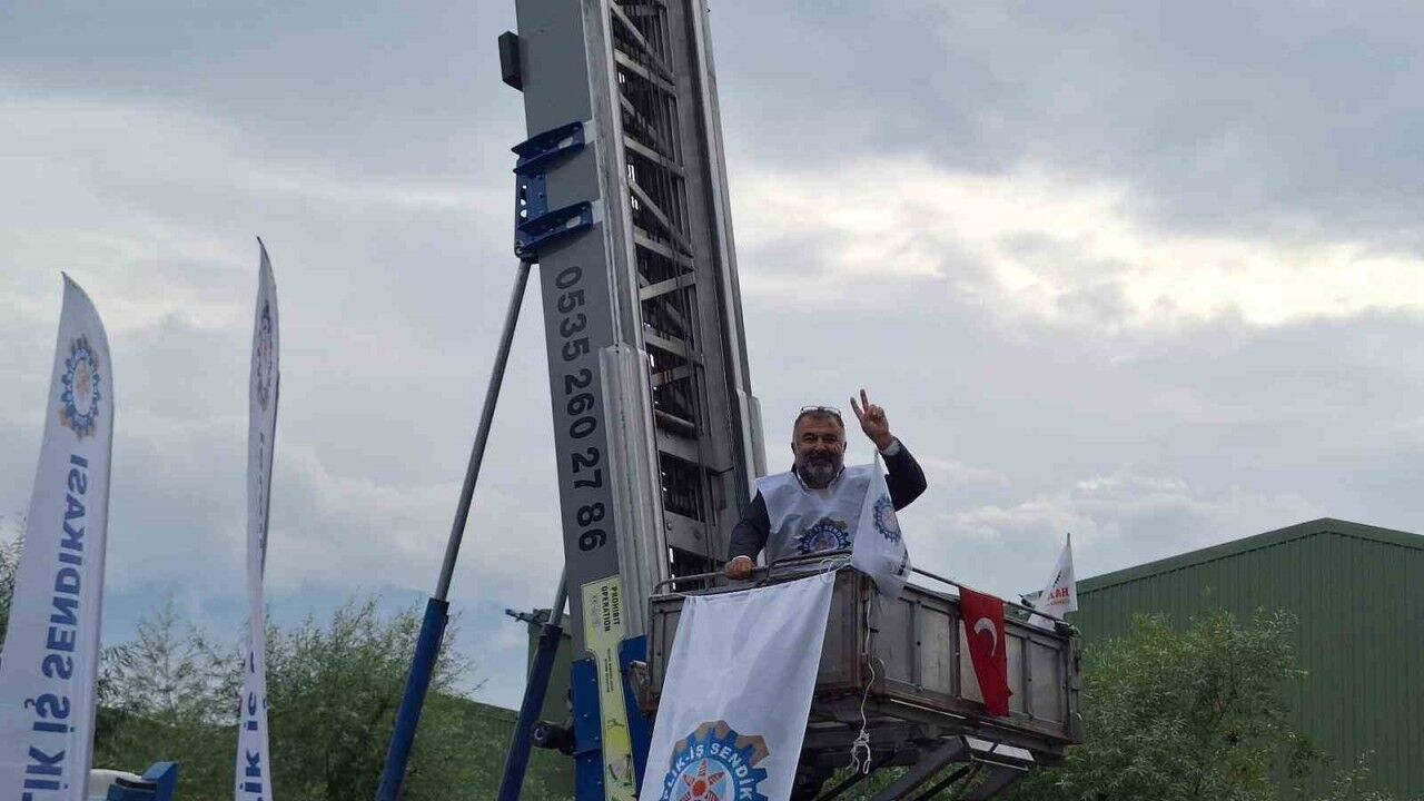 İşçiler, tüm bu engellemelere rağmen sendika temsilcileri mücadeleden vazgeçmemiş; işçilere seslenebilmek için vinç kullanarak çitlerin üzerinden konuşma yaptı.