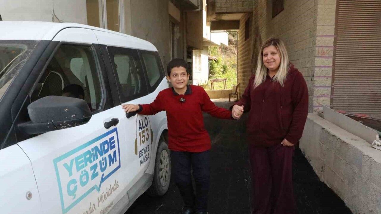 Hatay Büyükşehir Belediyesi, ihbar üzerine özel gereksinimli birey Sebahattin Delioğlu’nun evinin yolunu asfaltlayarak çocuğun sokakta rahatça yürüyebilmesini sağladı.