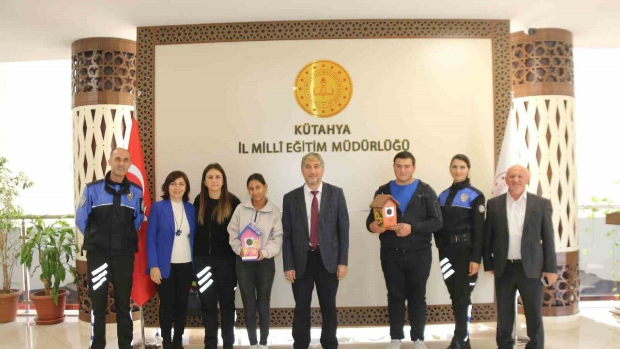 Kütahya Emniyet Müdürlüğü tarafından yürütülen, ’Güvenli Hayat ve Güvenli Gelecek İçin Çocuk ve Gençler Sosyal Koruma ve Destek Programı (ÇOGEP) 2025 - Dumlupınar’da Parlayan Yıldızlar’ projesi sürüyor. Bu çerçevede, Hayvanları Koruma Günü etkinlikleri sebebiyle Bahattin Çini Özel Eğitim Meslek Okulu’nun özel öğrencileri anlamlı bir çalışmaya imza attı. ’Fırçamız Sevgi, Renklerimiz Umut’ sloganıyla öğrenciler tarafından 20 adet kuş evi yapıldı. Hazırlanan kuş evlerinden 2’si öğrenciler tarafından İl Milli Eğitim Müdürü Mustafa Yılmaz’a takdim edildi. İl Müdürü Yılmaz, projeye emek veren öğrencilere ve tüm paydaşlara teşekkür ederek, bu çeşit anlamlı sosyal sorumluluk çalışmalarının önemine dikkat çekti. Hediye edilen kuş evleri, kuşlara yuva olması için İl Milli Eğitim Müdürlüğü bahçesindeki ağaçlara asıldı.