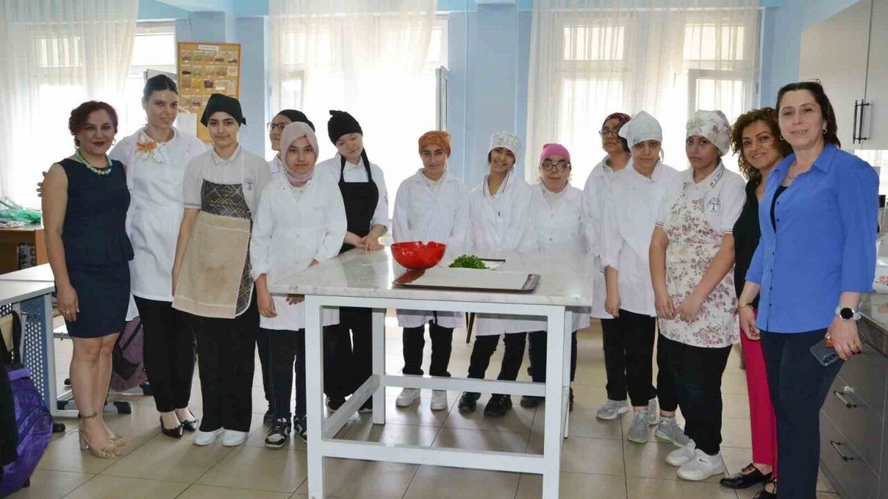Öğrencilerden Betül Yılgın, "Tatlı, tuzlu hamur işleri yapıyoruz. Kurabiyeler çok güzel şeyler yapıyoruz. Bu sınıfta olmak çok güzel bir duygudur. Öğretmenlerimi, arkadaşlarımı çok seviyorum" dedi. Öğrencilerden Lalesu Açıkgöz, "Tatlılar yapıyoruz, sütlaç yapıyoruz. Hamur işleri yapıyoruz. Poğaça, börek falan yapıyoruz" dedi.