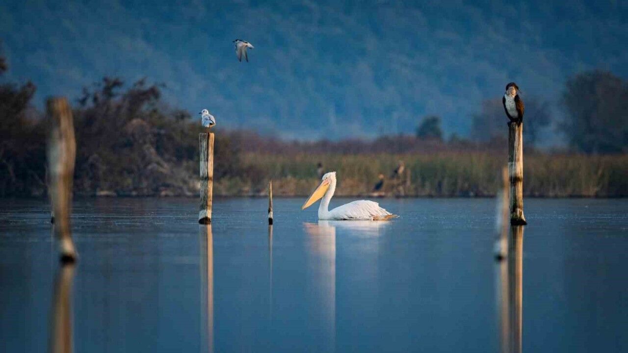 Tepeli pelikanlar yılın bu döneminde aralarına kattıkları genç bireylerle birlikte sulak alanlarda birlikte görülmeye başladı.Fotoğraf sanatçısı Alper Tüydeş tepeli pelikanları Uluabat Gölü’nde kayda aldı.