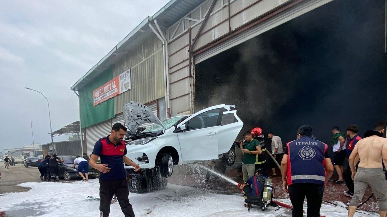 Yangın, Adnan Menderes Mahallesi küçük sanayi sitesi içerisinde meydana geldi. Edinilen bilgiye göre, PVC işiyle uğraşan Veysel Güllü’ye ait elektrikli otomobilden işyeri içerisinde park halindeyken birden dumanlar yükseldi. Dumanı fark eden Güllü ve işyeri çalışanları durumu itfaiye bildirdi. İtfaiyenin gelmesiyle müdahale edilen araç çevredeki vatandaşların yarımıyla halatlarla işyeri dışına çıkarıldı. Bir anda işyerini kaplayan dumanlar arasında otomobili dışarı çıkaran vatandaşlar muhtemel bir facianın önüne geçti. Yanan otomobil forklift üzerinde müdahale eden itfaiye ekipleri yangını söndürmek için saatlerce mücadele verdi.