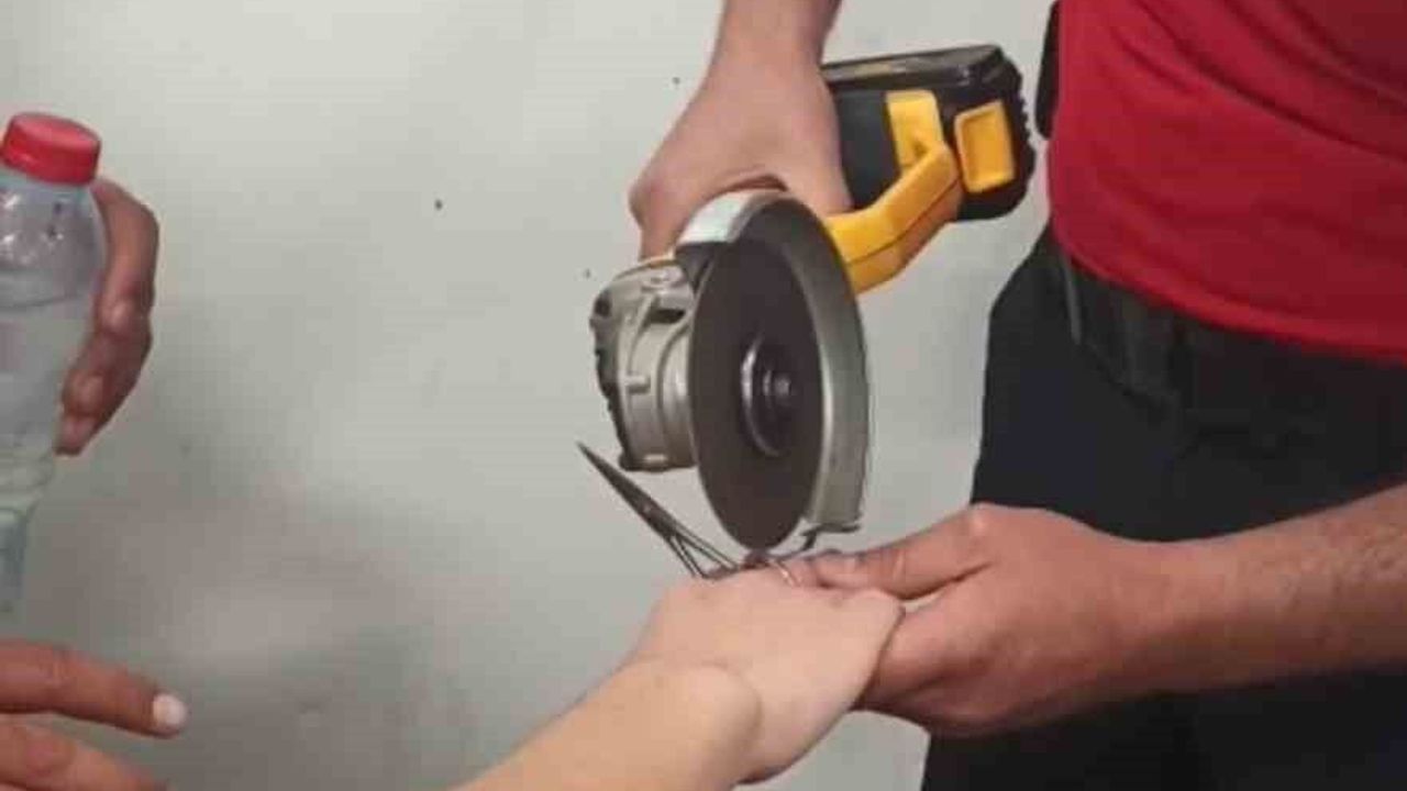 Mersin’in Tarsus ilçesinde 16 yaşındaki çocuğun makas halkasına sıkışan parmağı, itfaiye ekipleri tarafından çıkartıldı.