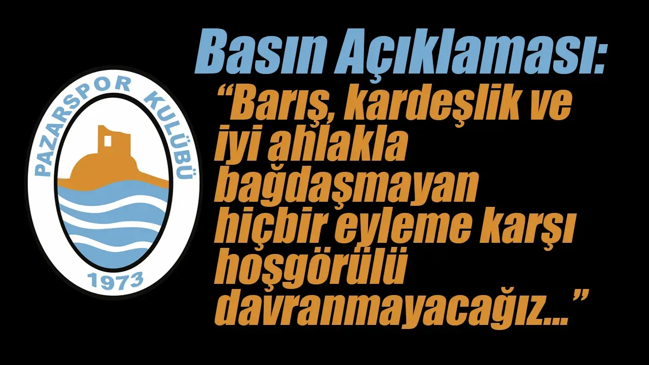 Pazarspor kulübü olarak; sporla ve sporun temsil ettiği barış, kardeşlik ve iyi ahlakla bağdaşmayan hiçbir eyleme karşı hoşgörülü davranmayacağımızın bilinmesini isteriz. Hakaret içerikli tezahüratın karşısında olacağımızın mutlaklığının yanında, özellikle Kulübümüzün armasının kullanıldığı, hakaret içerikli oluşturulan pankart, atkı, mont, forma gibi kişisel eşyaların oluşturulmasına ve kullanılmasına müsaade edilmesine imkan bulunmamaktadır.