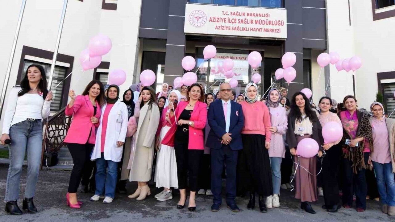 Aziziye İlçe Sağlık Müdürlüğü’nde 1-31 Ekim "Meme Kanseri Farkındalık Ayı" kapsamında kadınlara yönelik ücretsiz sağlık taraması yapıldı, Meme kanserinde farkındalık ve erken teşhisin önemine dikkat çekmek amacıyla ve kansersiz bir dünya temennisiyle ’pembe balonlar’ uçuruldu.