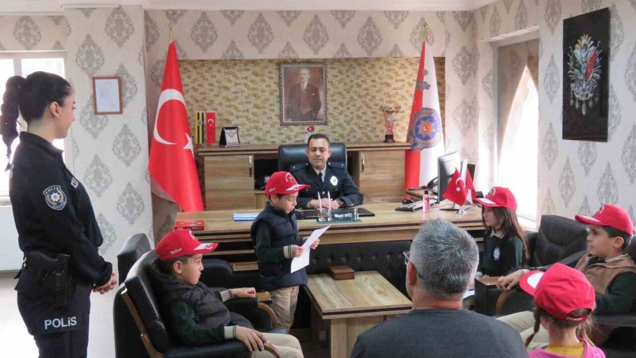 Konya’nın Taşkent ilçesinde, hayali polis olmak olan ilkokul öğrencileri Polis Haftası münasebetiyle emniyeti ziyaret ederek bir günlüğüne polis oldu, unutulmaz bir gün yaşadı.
