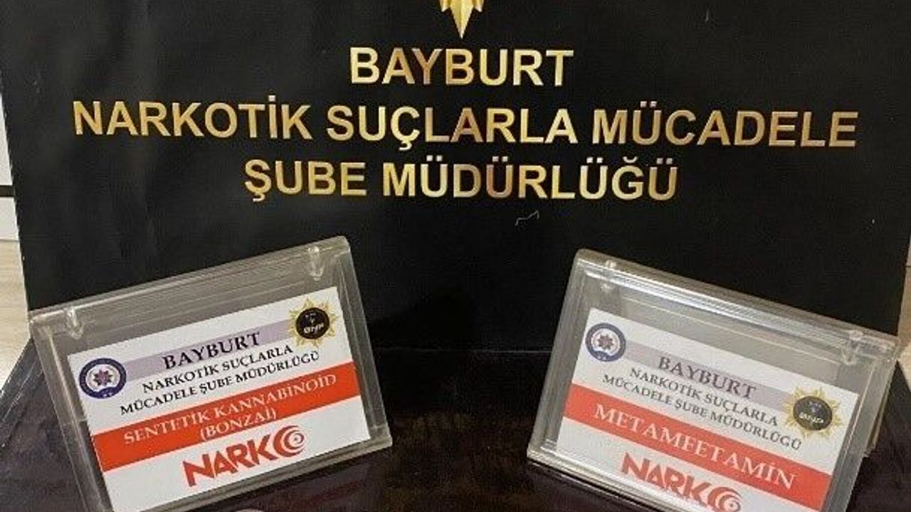 Bayburt İl Emniyet Müdürlüğü Narkotik Suçlarla Mücadele Şube Müdürlüğü görevlilerince narkotik madde kullanımı, imal ve ticaretinin önlenmesi amacıyla yapılan saha ve analiz çalışmaları sonucunda durdurulan araç ve araç içerisinde bulunan M.G.B isimli şahıs üzerinde adli arama gerçekleştirildi, şüphelinin üzerinde bir miktar metamfetamin ve bonzai maddesi bulundu. Uyuşturucu maddeye ekiplerce el konulurken, cumhuriyet savcısı talimatıyla şüpheli şahıs hakkında uyuşturucu madde kullanmaktan işlem yapıldı
