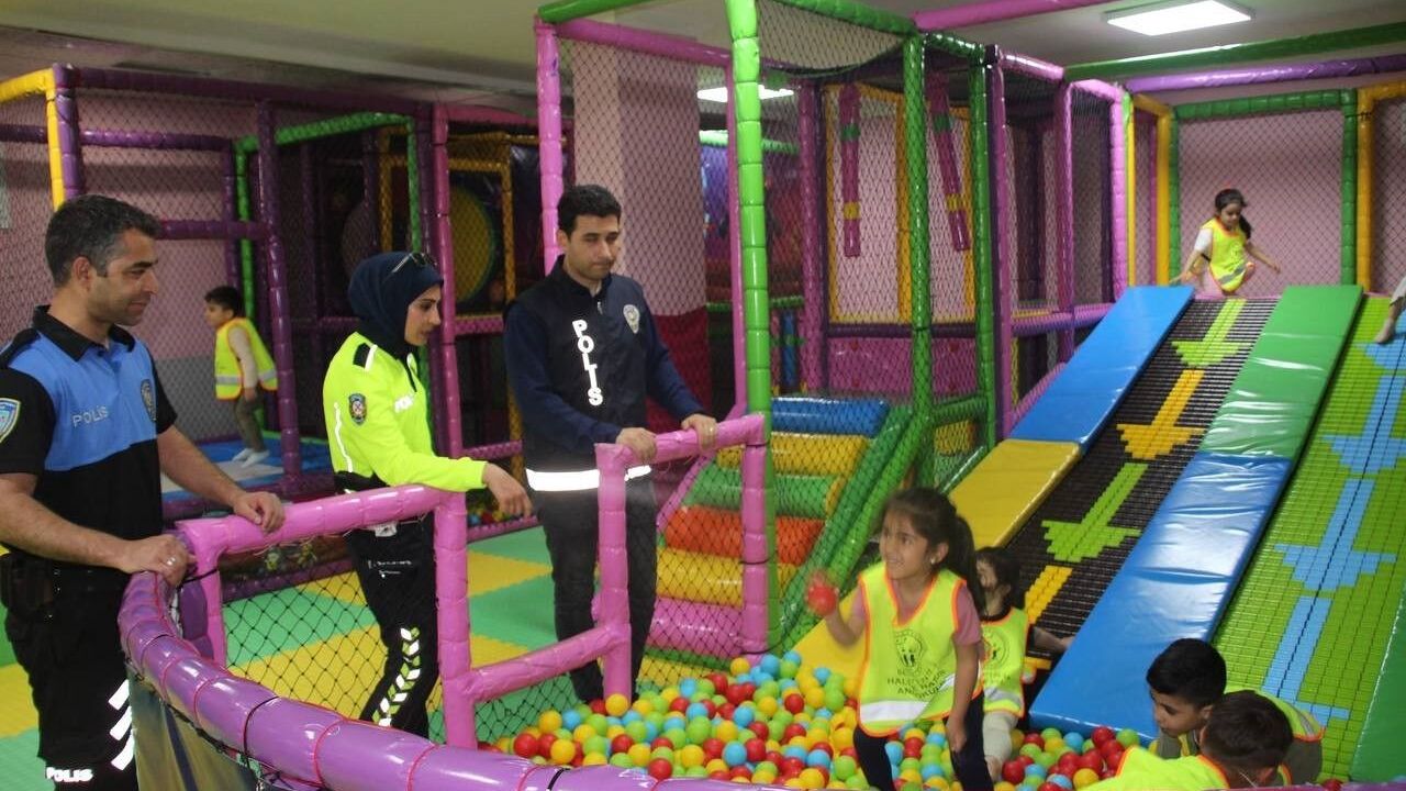 Şanlıurfa’nın Ceylanpınar ilçesinde bir anaokulunu ziyaret eden polis memurları, çocukların oyun merkezine gitme hayalini gerçekleştirdi.