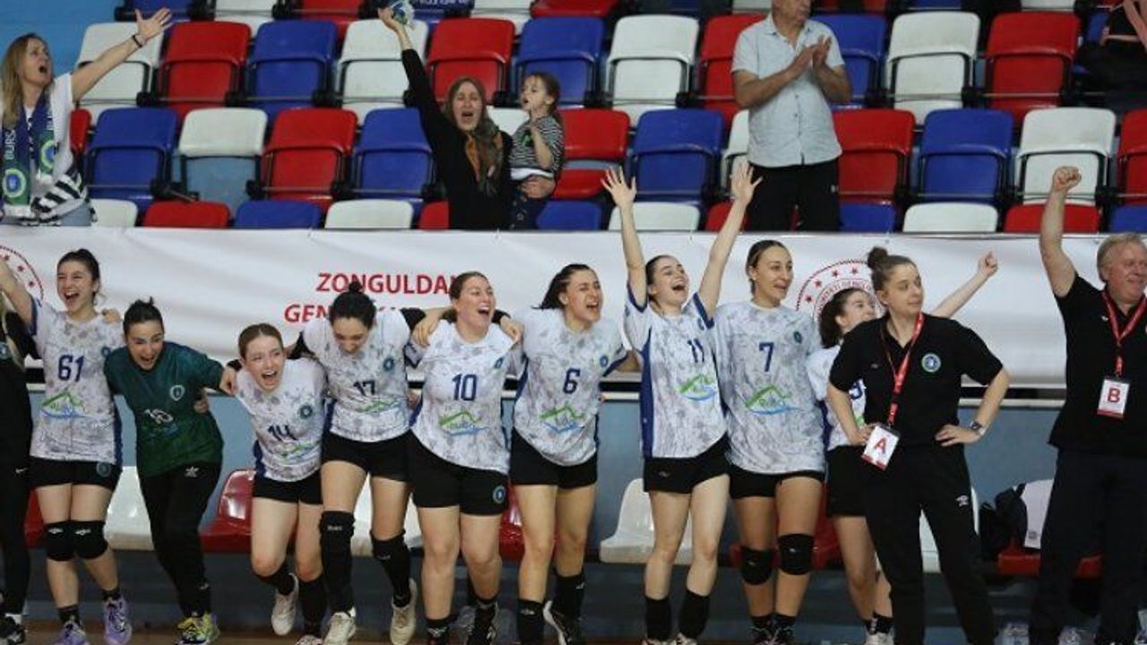 Şampiyon Bursa Büyükşehir Belediyespor Kadın Hentbol Takımı Süper Lig'e çıkmayı garantiledi.ZONGULDAK (İGFA) - Zonguldak'ta devam eden Kadınlar Hentbol 1. Ligi play-off'larında Bursa Büyükşehir Belediyespor, üçüncü maçında Sivas Belediyespor'u 33-26 mağlup ederek 3'te 3 yaptı ve bitime bir maç kala şampiyon olarak Süper Lig'e çıkmayı garantiledi.