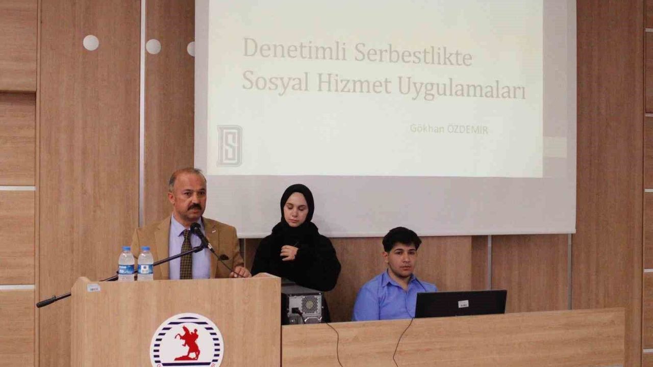 Sosyal Hizmet Bölümü tarafından gerçekleştirilen 'Denetimli Serbestlikte Sosyal Hizmet Uygulamaları' konulu konferansta, denetimli serbestlik sürecinde sosyal hizmetin rolü, bireylerin topluma kazandırılması ve psiko-sosyal destek mekanizmaları ele alındı. Etkinlik, öğrenciler ve akademisyenlerin katılımıyla interaktif bir ortamda gerçekleşti. Konferansın açılış konuşmasını yapan Sosyal Hizmet Bölümü Başkanı Prof. Dr. Ercümend Ersanlı, denetimli serbestlik uygulamalarının yalnızca hukuki bir süreç olarak değil, aynı zamanda bireyin sosyal işlevselliğini yeniden kazanmasını hedefleyen çok boyutlu bir müdahale alanı olarak değerlendirilmesi gerektiğini vurguladı.