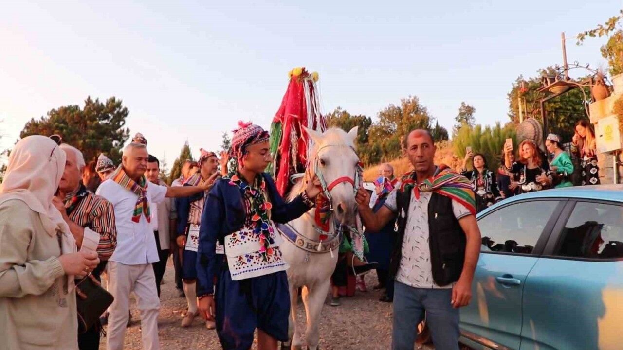Yörük-Türkmen kültürünün yaşatıldığı düğünde gelin ve damat, geleneksel kıyafetler giydi. Köy meydanına kurulan Yörük çadırında, yerel sanatçı Mehtap Takmalı’nın türküleri eşliğinde kına gecesi düzenlendi. Gelinin ellerine kına yakılırken duygusal anlar yaşandı.