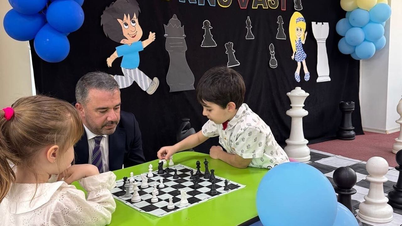 Nezaket Kreş Okulunda gerçekleştirilen Geleneksel Satranç Turnuvasına gelerek çocukları yalnız bırakmayan Belediye Başkanı Ertuğrul Çetin, miniklerin müsabakalar esnasında birbirleri ile kıyasıya yarışarak, akıl dolu hamlelerle oyunda kendilerini öne taşıyan hamleleri dikkatlice takip etti.