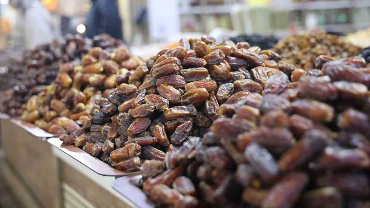 Ramazan ayının gelmesiyle birlikte hurma çeşitleri Elazığ'ın tarihi Kapalı Çarşısında tezgahlarındaki yerini aldı.