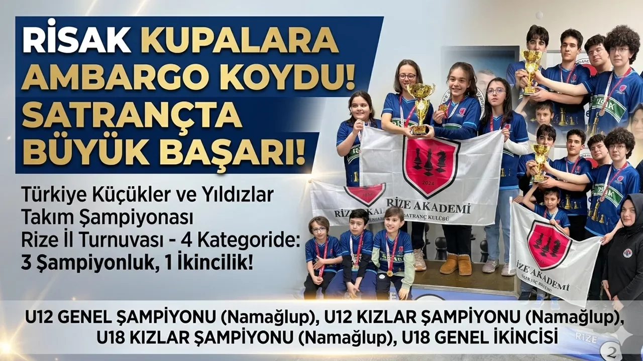 Rize Satranç İl Temsilciliği tarafından düzenlenen Türkiye Küçükler ve Yıldızlar Takım Satranç Şampiyonası Rize İl Turnuvası sona erdi. Turnuvaya damga vuran Rize Akademi Satranç Spor Kulübü (RİSAK), sergilediği üstün performansla 4 farklı kategorinin 3'ünde namağlup şampiyonluğa ulaşarak büyük bir başarıya imza attı.