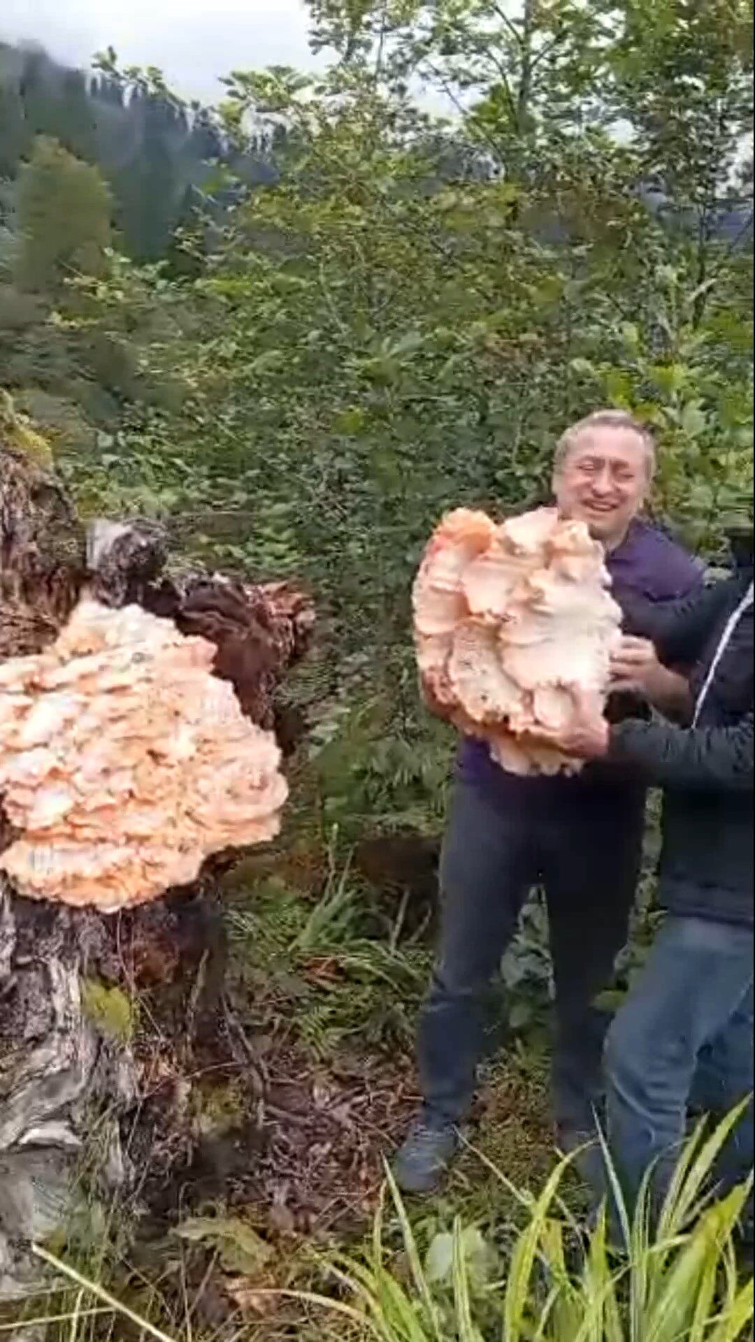 HABER:ARZU ERBAŞ /Ardeşen Deremezra köyünde orman içinde gezintiye Mehmet Dalbastı, Mustafa Karaca ve Ahmet Balsüzen bir ağaç kütüğünün üzerinde büyümüş kilolarca mantarı görünce şaşkınlıklarını gizleyemedi. GAZETERİZE O anları cep telefonu ile kayda alan 3 arkadaş mantarları tek tek toplayarak köye götürüp köy halkına dağıttı.