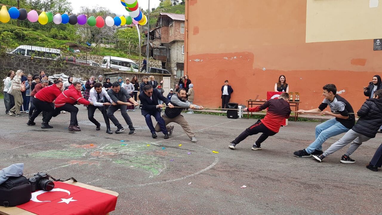 Özellikle 8. sınıf öğrencilerinin erkekleri ile okulun erkek öğretmenleri arasında yapılan halat çekme yarışması veliler tarafından ilgi ile izlenip beğenildi.