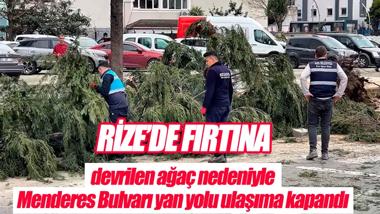 Şiddetli rüzgar ve fırtına Rize'de hayatı olumsuz etkiledi. Merkeze bağlı Eminettin Mahallesi Menderes Bulvarı'nda bulunan bir ağaç fırtına nedeniyle devrilerek yolu ulaşıma kapattı.