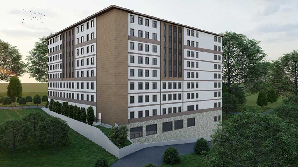 Recep Tayyip Erdoğan Üniversitesi Zihni Derin Yerleşkesinde, 3 bin metrekarelik taşınmaz üzerinde toplam 11 kat olarak inşa edilen proje kapsamında; 150 adet oda, idari birimler, 600 kişilik yemekhane ve çeşitli sosyal alanlar yapılacak.