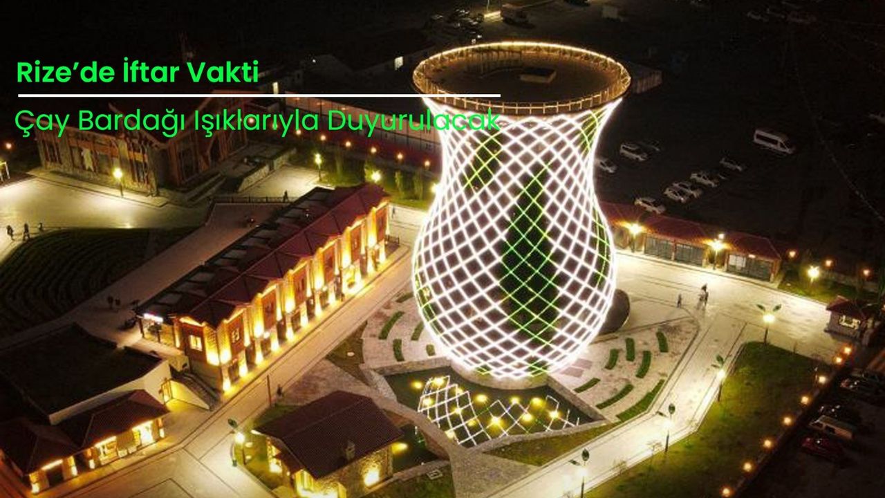 HABER:ARZU ERBAŞ / Rize’nin simgelerinden biri haline gelen Çay Çarşısı’ndaki dev çay bardağı, Ramazan ayında iftar saatini LED ışıklandırmalarla duyuracak. İftar vakti geldiğinde çay bardağı üzerindeki LED aydınlatmalar eş zamanlı olarak yanarak vatandaşlara görsel bir iftar hatırlatıcısı olacak.