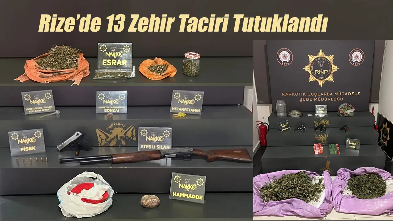 Rize İl Emniyet Müdürlüğü, gençleri zehirlemeye çalışan "torbacı" olarak tabir edilen sokak satıcılarına yönelik kapsamlı bir operasyon gerçekleştirdi. Şafak vakti düzenlenen operasyonlarda çok miktarda uyuşturucu madde ve silah ele geçirilirken, adliyeye sevk edilen şüphelilerden 13’ü tutuklandı.