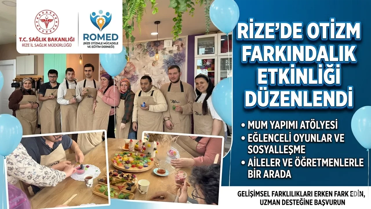 Rize İl Sağlık Müdürlüğü ile Rize Otizmle Mücadele ve Eğitim Derneği (ROMED) iş birliğinde otizm farkındalık etkinliği gerçekleştirildi. Düzenlenen etkinlikte otizmli bireyler, aileleri ve öğretmenleri bir araya gelerek hem eğlenceli hem de bilinçlendirici anlar yaşadı.
