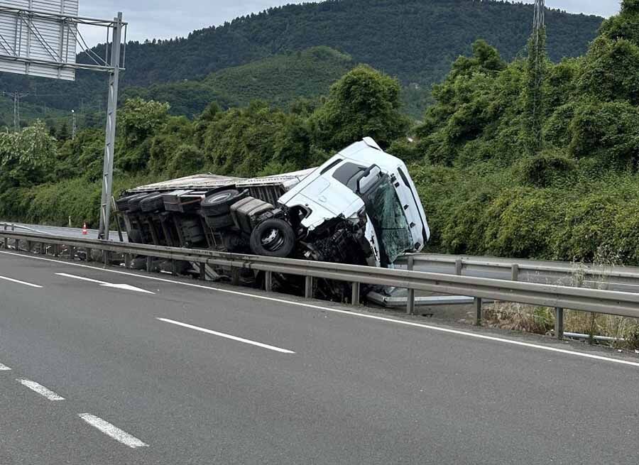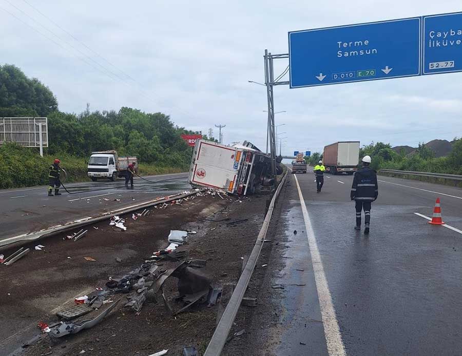 Kaza Göbü Mahallesi Ordu-Samsun Karayolu Yunus Emre Bulvarı üzerinde meydana geldi. Edinilen bilgiye göre, Rize’den İstanbul’a çay sevkiyatı yaptığı öğrenilen Kenan Katip (53) yönetimindeki 53 ADR 474 plakalı tır, sürücüsünün direksiyon hakimiyetini kaybetmesi sonucu orta refüjdeki bariyerlere çarptı. Çarpmanın etkisiyle sola devrilen tır sürücüsü kabin içerisinde sıkıştı.