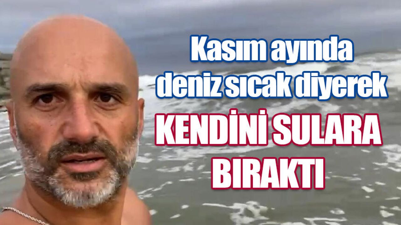 Doğu Karadeniz bölgesinde havaların soğumasına aldırmayan ve Rize’nin Pazar ilçesinde yaşayan Ahmet Mamin dalgalı denize aldırmadan denize girdi.