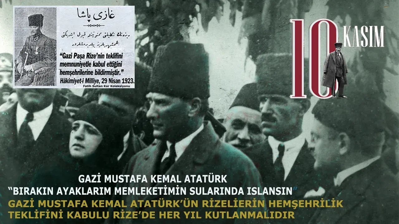 Vefatının 87. Yılı Anısına. Rizelilerin Hemşehrisi Gazi Mustafa Kemal Atatürk “BIRAKIN AYAKLARIM MEMLEKETİMİN SULARINDA ISLANSIN” GAZİ MUSTAFA KEMAL ATATÜRK’ÜN RİZELİERİN HEMŞEHRİLİK TEKLİFİNİ KABULU RİZE’DE HER YIL KUTLANMALIDIR