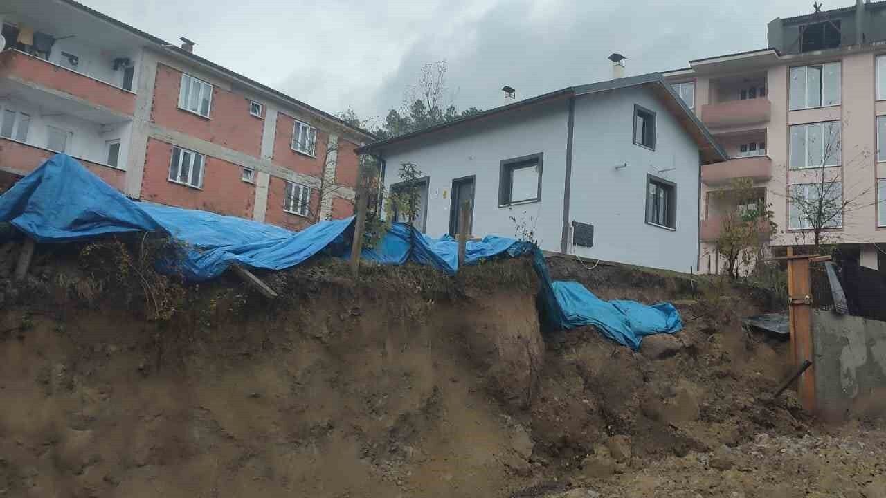 Bartın Ulus ilçesinde yapılan temel kazma çalışmasının yapıldığı arazide, son yağışların ardından toprak kayması yaşandı. Heyelanda arazisinin bir evin de çökme riski bulunuyor.