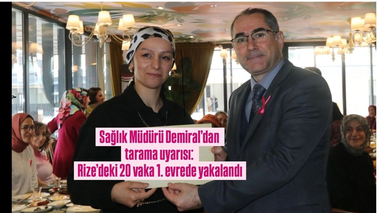 Programda bir konuşma yapan Rize Sağlık Müdürü Doç. Dr. Gökhan Demiral “İl Meme kanseri tarama verilerinde 2025 yılında Ekim ayı itibari ile Rize'de 250 tane şüpheli vaka görülmüş, bunların 20 tanesine meme kanseri tanısı konulmuş ve bunların tamamı evre 1'de tespit edilmiş. Evre 1 demek aslında bir hastalık olmaktan kişiyi çıkartan, çözüm üretmeyi sağlayan bir aşama. Gösteriyor ki taramaları aksatmamak gerekiyor. 40 yaşta başlıyoruz yılda bir defa ve 60 yaştan sonra iki yılda bir defa muhakkak taramalara katılıyoruz. Bu taramalar bize tümörü 1 santimin altındayken bile yakalama imkânı tanıyor. İlimizde birçok birimdeki mamografi cihazı kanser taramalarında aktif kullanılıyor. Ekiplerimizle cihazlarımız mahalle mahalle geziyor ve taramaları yapıyor. Meme kanseri gibi rahim ağzı ve kolon kanseri içinde taramalarımızı sürdürüyoruz. Daha fazla insana ulaşmak daha fazla erken tanıya ulaşmak bizim sağlık politikamızın vazgeçilmez unsurlarından biridir” dedi.