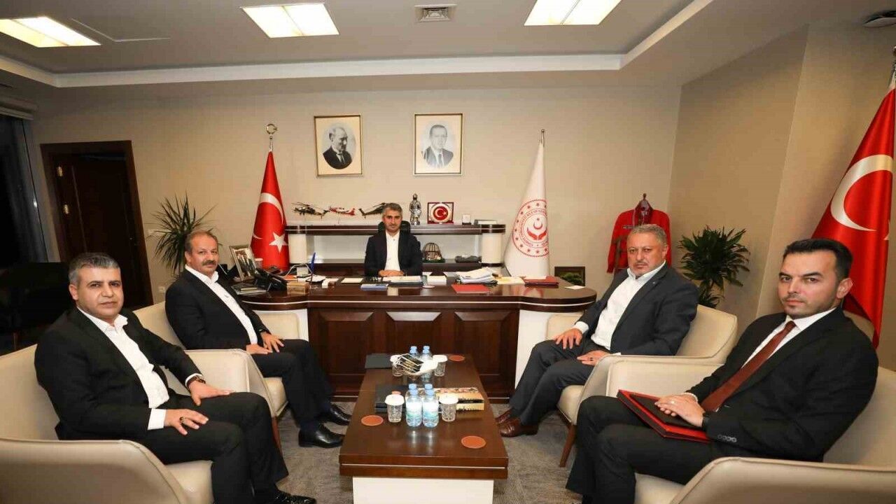 Sağlık-Sen Genel Başkanı Mahmut Faruk Doğan, Aile ve Sosyal Hizmetler Bakan Yardımcısı Zafer Tarıkdaroğlu’nu ziyaret etti. Ziyarette, Bakanlık bünyesinde görev yapan çalışanların talep ve istekleri ile çözüm önerileri sunuldu.