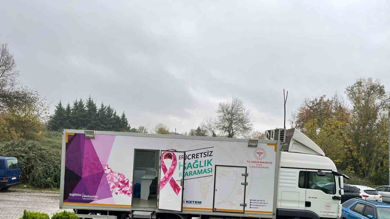 Düzce’de sağlık ekipleri mobil sağlık hizmetleriyle köy köy mahalle mahalle gezerek sağlık hizmeti veriyor. Kanser taramalarını yaygınlaştırmak ve daha fazla kişiye ulaşmak amacıyla Düzce Merkez Toplum Sağlığı Merkezi ekipleri Bahçeşehir Bölgesi Sağlıklı Hayat Merkezi önünde konuşlandırılan tırda bölgede yaşayan 40-69 yaş arası kadınlara meme kanseri, 30-65 yaş arası kadınlara rahim ağzı kanseri, 50-70 yaş arası kadınlara da bağırsak kanseri taramalarını ücretsiz olarak yapıyor.