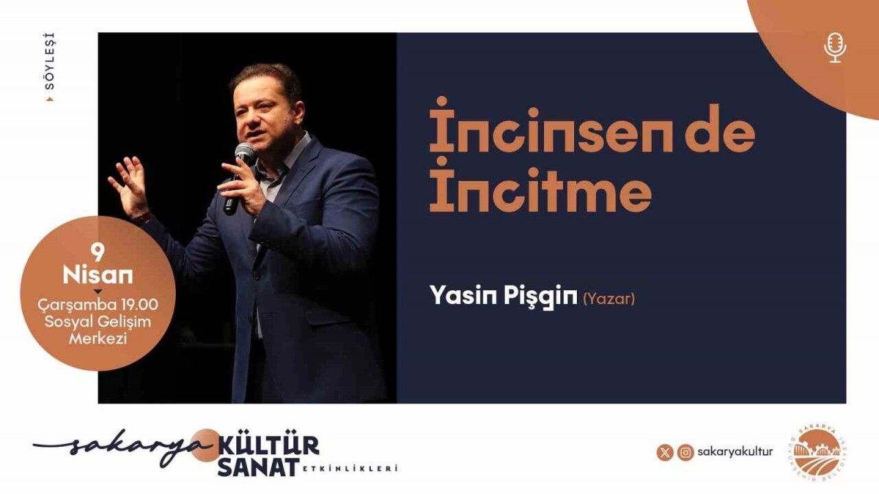 Sakarya Büyükşehir Nisan kültür sanat etkinlikleri, 9 Nisan Çarşamba günü düzenlenecek İncinsen de incitme" adlı söyleşiyle devam edecek. Saat 19.00’da SGM’de gerçekleştirilecek söyleşiye konuşmacı olarak Yazar Yasin Pişgin katılacak.