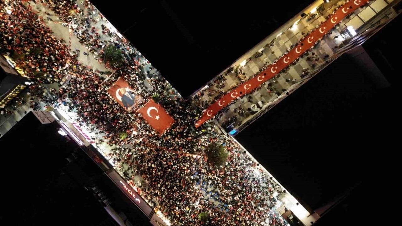 Cumhuriyet’in 100. yılında valilik tarafından düzenlenen fener alayına yüzlerce vatandaş katıldı. Bando takımı, eşliğinde açılan Atatürk ve 100 metre uzunluğundaki Türk bayrağını tutan vatandaş, Çark Caddesi’nden ‘Mustafa Kemal’in Askerleriyiz’, ‘Ne Mutlu Türküm Diyene’ sloganları atıp yürümeye başladı. Demokrasi Meydanı’nda son bulan kutlamalarda kartpostallık görüntüler oluştu. Cumhuriyet coşkusunu yaşayan vatandaşlar gösteriyi izlerken, bir yandan da cep telefonları ile fotoğraf ve video çekti.