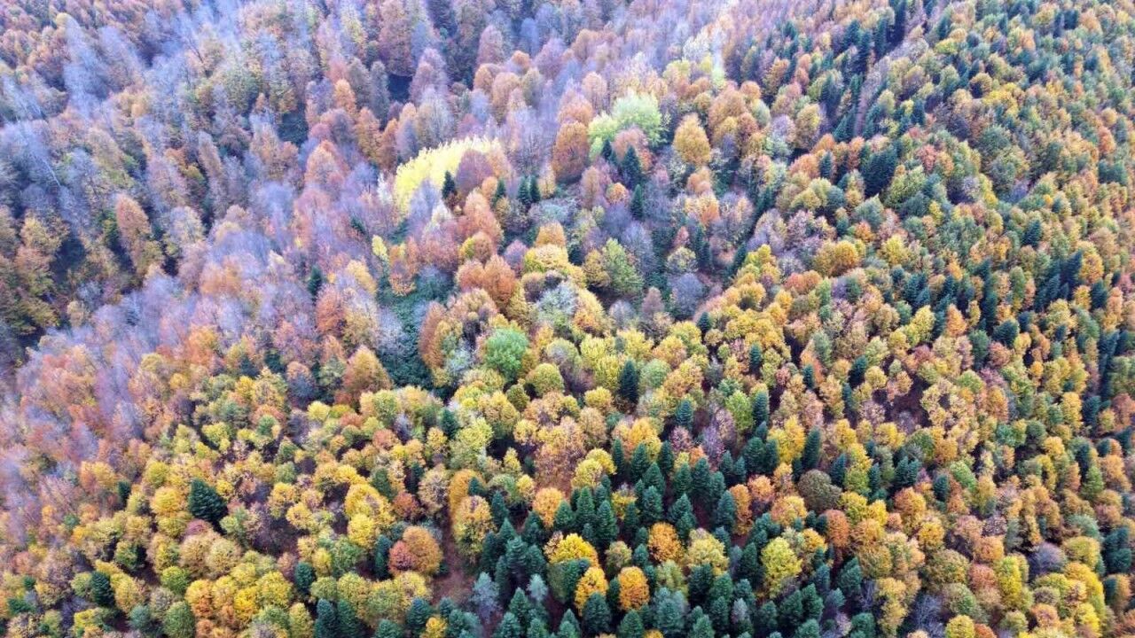Sakarya’nın Akyazı ilçesinde sonbaharın gelişiyle birlikte ormanlık alanlar sarı, turuncu ve kızılın tonlarıyla adeta bir renk şölenine dönüştü. Bölgede ortaya çıkan eşsiz güzellik havadan görüntülendi.