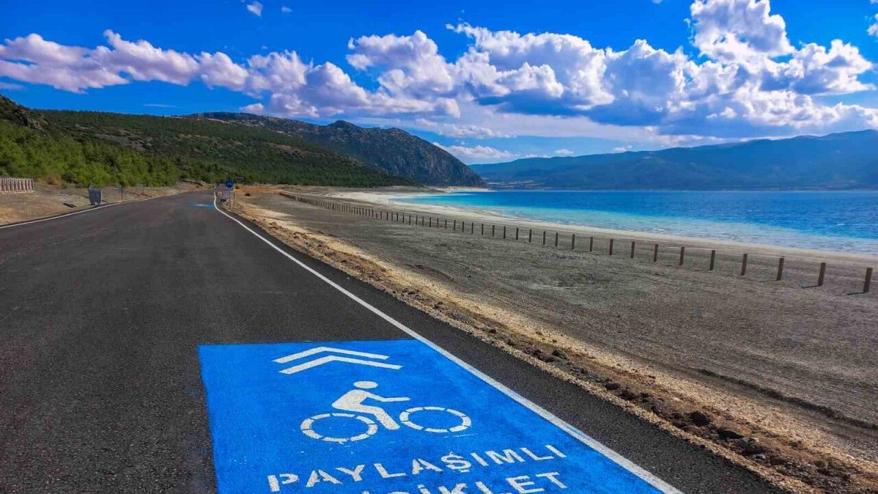Salda Gölü kenarına yapılan 7 kilometrelik paylaşımlı bisiklet yolunda incelemelerde bulunan Vali Türker Öksüz, “Önemli bir bisiklet rotasını bölge turizmine kazandırmış bulunuyoruz” açıklamasında bulundu.