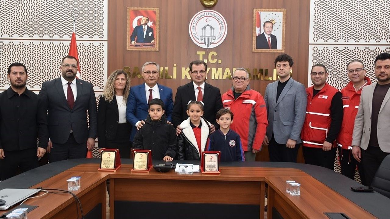 Manisa'nın Salihli ilçesinde 29 Ekim-4 Kasım Kızılay Haftası etkinlikleri kapsamında düzenlenen 'Salihli Sana Kanım Feda' kan bağışı kampanyasında dereceye giren öğrenciler, Salihli Kaymakamı Ali Güldoğan'ı makamında ziyaret etti.