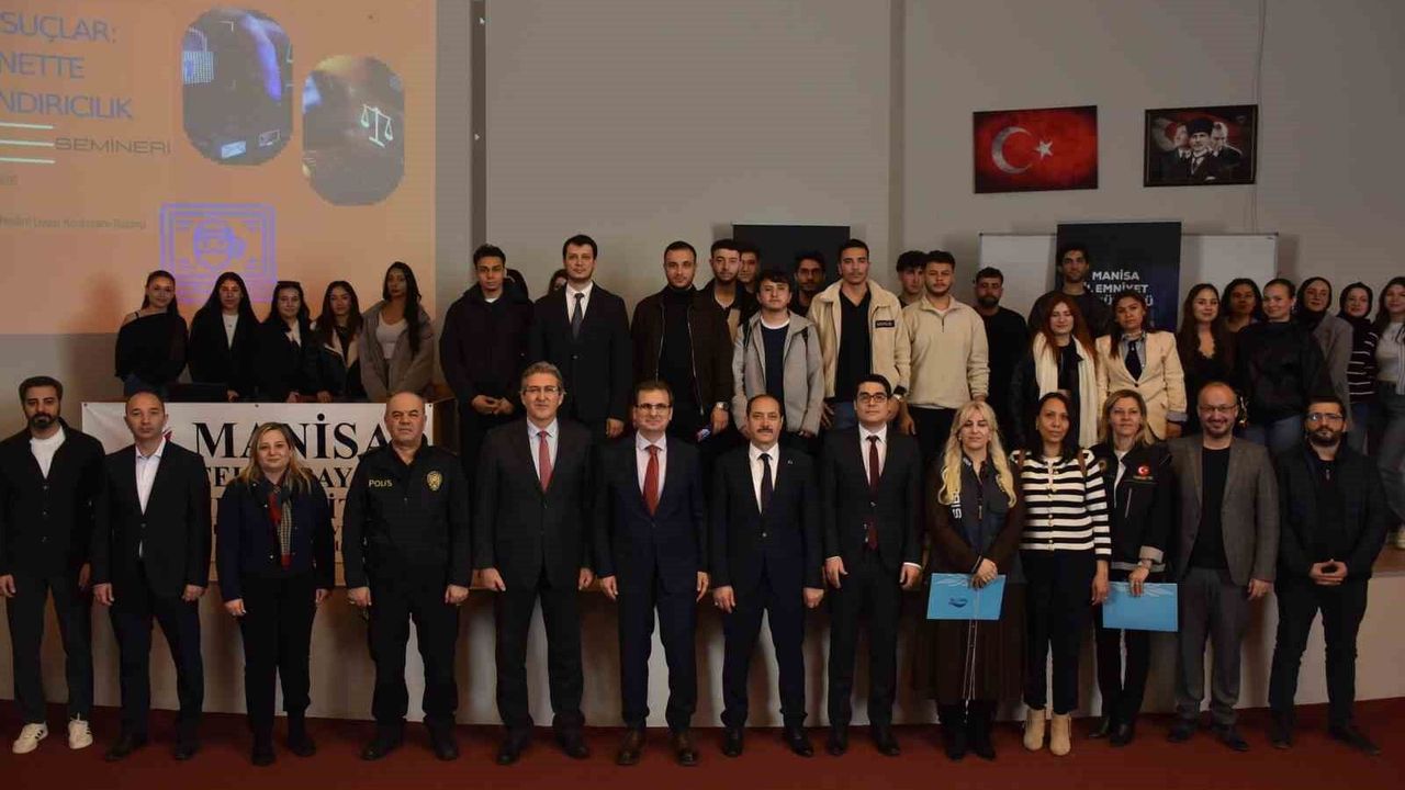 Manisa'nın Salihli ilçesinde üniversite öğrencilerine yönelik düzenlenen seminerde siber suçlar, internet dolandırıcılığı ve kişisel veri güvenliği konuları ele alındı.