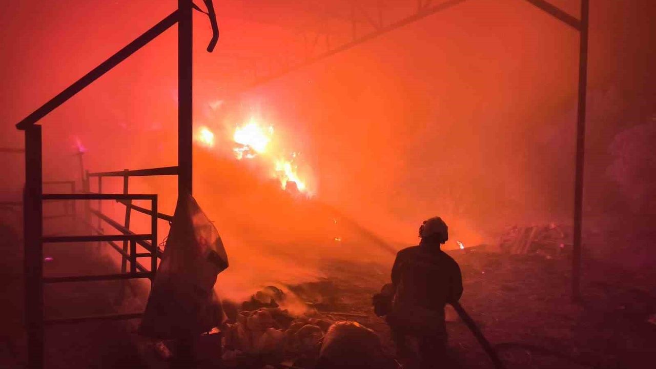 Hatay'da 100 büyükbaş hayvanın bulunduğu çiftliğin samanlık kısmında çıkan yangın, itfaiye ekiplerinin müdahalesiyle besihaneye sıçramadan kontrol altına alındı.