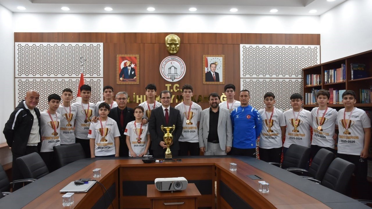 Ziyarette İlçe Milli Eğitim Müdürü Mahmut Yenen ile beden eğitimi öğretmenleri de yer aldı. Şampiyon öğrencileri tek tek tebrik eden Kaymakam Güldoğan, elde edilen başarının gurur verici olduğunu belirterek, sporculara ve emeği geçen herkese teşekkür etti. Kaymakam Güldoğan, genç sporculara başarılarının devamını diledi.