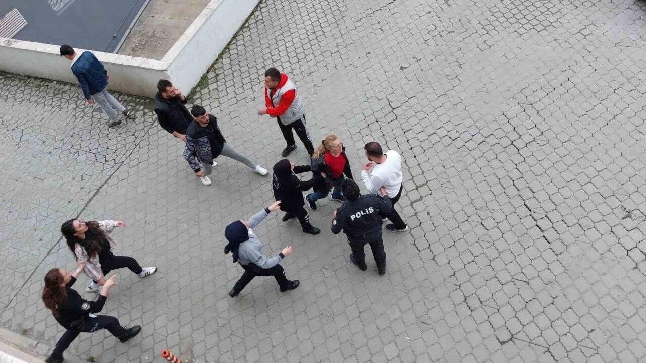 Samsun Adliyesinde görülen silahlı yaralama davası çıkışında taraflar arasında yaşanan kavgada 1 kişi kafasına bıçak kabzası ile vurularak yaralandı.